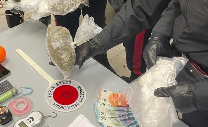 Nel corso della mattinata odierna (ieri, ndr) , a Mondragone, i carabinieri della sezione radiomobile del locale Reparto Territoriale hanno fermato un giovane sospetto in (...). Il ragazzo, a bordo di uno scooter con la targa alterata mediante nastro adesivo nero, alla vista dei militari ha tentato di allontanarsi, ma è stato prontamente bloccato. Durante il controllo, il (...), ha opposto resistenza, spintonando e strattonando i carabinieri nel tentativo di fuggire. Una volta immobilizzato, è stato trovato in possesso di una modica quantità di marijuana. La successiva perquisizione domiciliare ha permesso di rinvenire otto piante di marijuana in essiccazione, nonché complessivamente gr. 190 di cocaina, confezionata in panetti e dosi pronte per lo spaccio, gr. 250 di marijuana, suddivisa in confezioni e gr. 10 di hashish. I complessivi 440 grammi di sostanze stupefacenti sono stati sottoposti a sequestro. Nella stessa abitazione sono stati inoltre trovati una pistola replica modello 92 fs calibro 8 mm, marca bruni, priva del tappo rosso, materiale per il confezionamento e la pesatura delle dosi, nonché 120 euro in contanti in banconote di piccolo taglio. Il giovane è stato arrestato e tradotto presso il carcere di Santa Maria Capua Vetere in attesa dell’udienza di convalida. Dovrà inoltre, inoltre, rispondere dell’alterazione della targa dello scooter, mentre la (...) è stata denunciata per detenzione ai fini di spaccio e favoreggiamento".