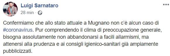 Questo parte di quanto appreso dalla pagina facebook del Sindaco Sarnataro: