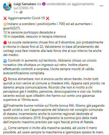 Dalla pagina Facebook del Sindaco di Mugnano di Napoli Luigi Sarnataro