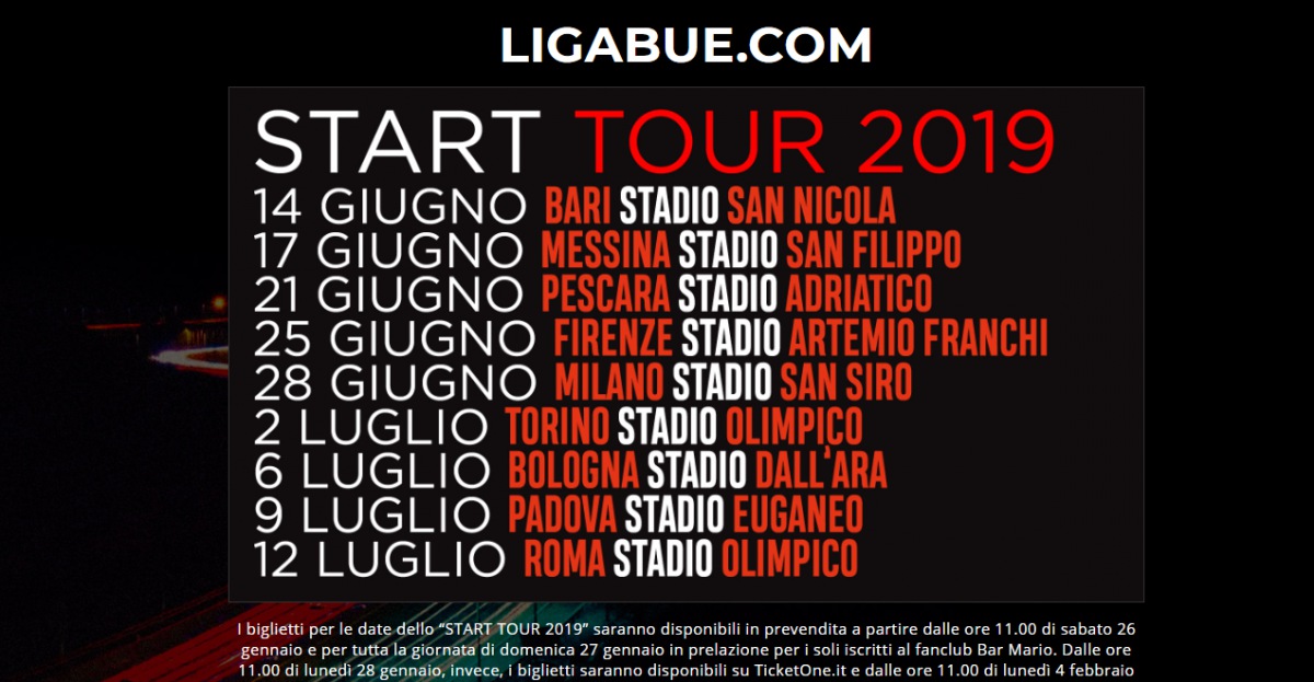Apprendiamo la notizia dell'uscita delle date del tour di Ligabue, dal sito ufficiale, Ligabue.com.