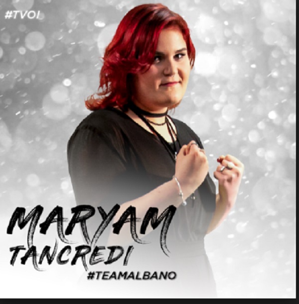 Maryam Tancredi è la vincitrice di The Voice of Italy 2018con il brano “Una buona idea”. Nata a S. Giorgio a Cremano (NA) il 16/03/1999, vive a Somma Vesuviana (NA). A febbraio 2011 partecipa come ospite al programma televisivo "I Fatti Vostri"di Magalli su RAI 2. Sempre nel 2011 partecipa per la prima volta a“Ti Lascio una Canzone” di Antonella Clericie in seguito partecipa al festival internazionale della canzone classica napoletana il "Pulcinella D'Oro" vincendo il primo premiodella sua categoria e primo premio assoluto su 22 nazioni. Ad agosto 2011 partecipa al Memorial in onore di Mia Martini dove riceve un premio "Miglior Voce Per Mimì" da Leda Bertè sorella di Mia Martini. Da settembre 2011 a gennaio 2012 partecipa come protagonista al programma televisivo "Ti Lascio una canzone" su RAI 1 classificandosi al 2° posto. Duetta con Ivana Spagna, Loredana Bertè e Orietta Berti. Da febbraio ad aprile 2012 prende parte al tour nazionale "Ti Lascio Una Canzone". Ad aprile 2012 prende parte agli spettacoli al "Trump Taj Mahal" ad Atlantic City U.S.A. Da maggio 2012 prosegue con il tour nazionale di "Ti Lascio Una Canzone". Continua il percorso della sua attività live nel 2013 (vari spettacoli con i ragazzi di "Ti Lascio Una Canzone") e nel 2014 registrazione puntata zero di una sit com per la NUCT presso Cinecittà presentata al festival di Cannes. Fino al 2018, anno in cui partecipa e vince “The Voice of Italy” alla quale si sussegue la partecipazione al Wind Summer Festival e ospitate a vari programmi Rai."