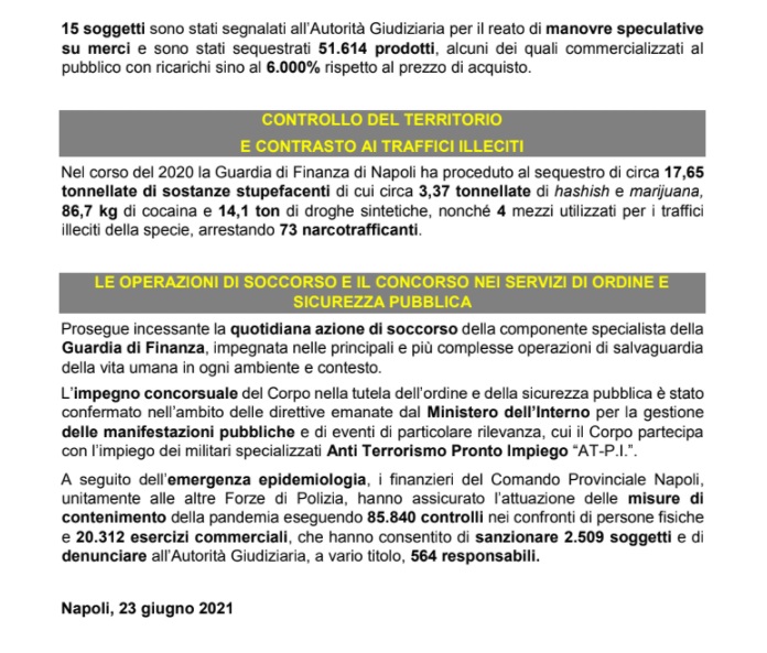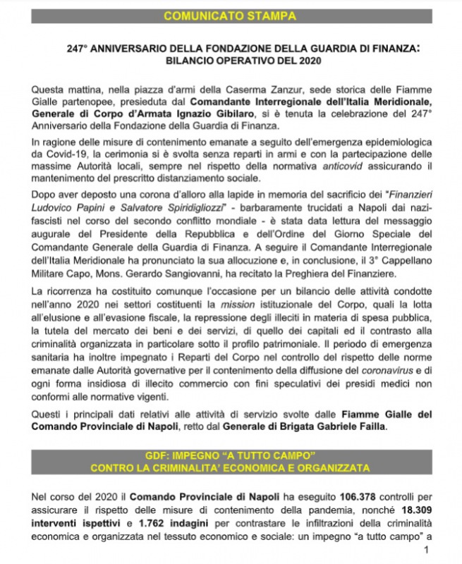 Questa la nota stampa della Guardia di Finanza di Napoli: