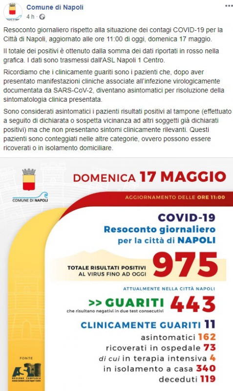 Questo quanto apprendiamo sulla pagina facebook del Comune di Napoli: