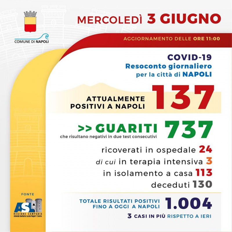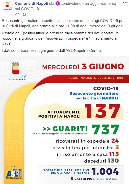 Questo quanto apprendiamo dalla pagina facebook del Comune di Napoli: