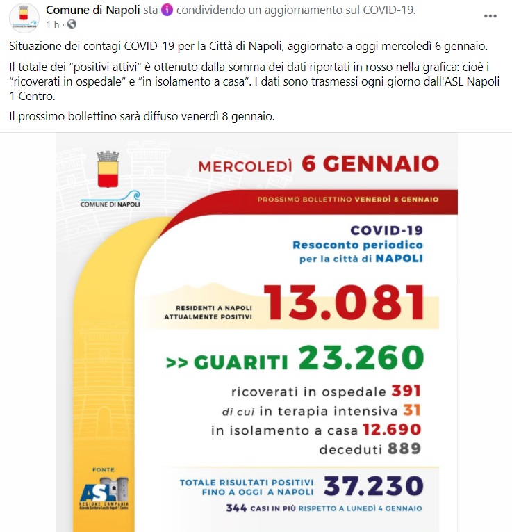 Questo quanto apprendiamo dalla pagina facebook del Comune di Napoli: