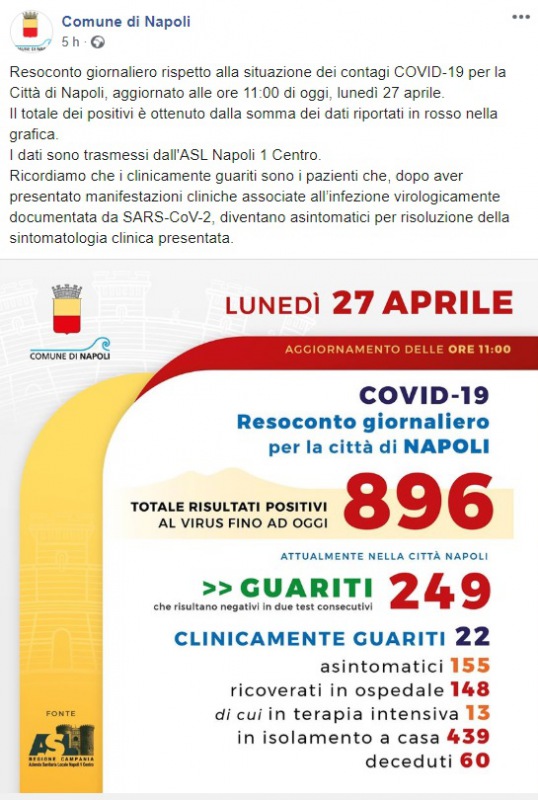 Questo quanto pubblicato sulla pagina facebook del Comune di Napoli: