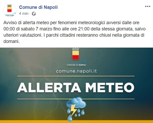 Questo quanto pubblicato sulla pagina facebook del Comune di Napoli: