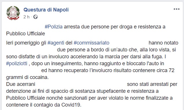 Questo quanto pubblicato dalla Questura di Napoli