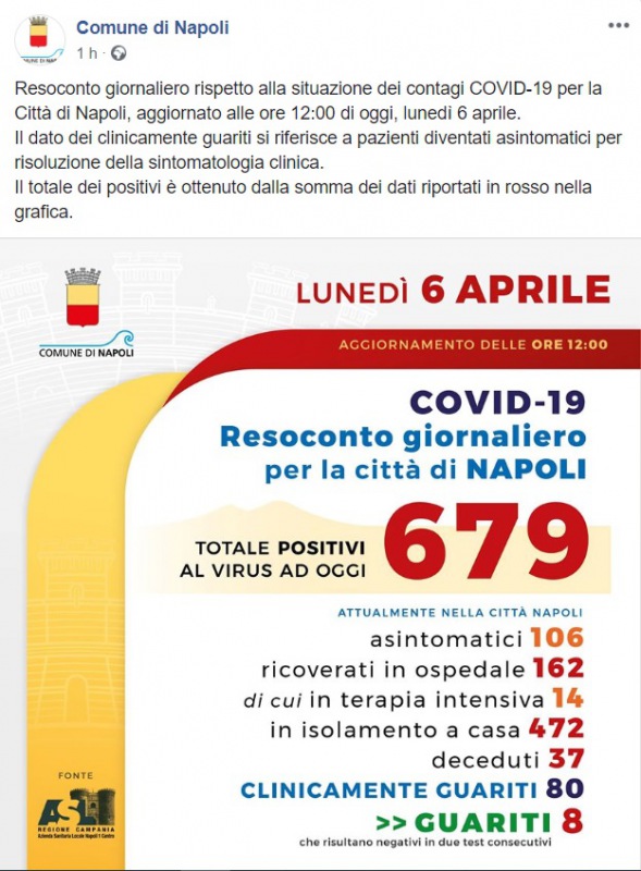 Questo quanto pubblicato sulla pagina facebook del Comune di Napoli