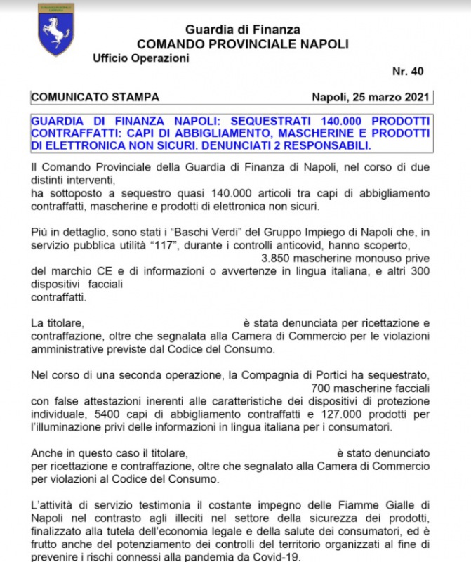 Questa parte della nota della Guardia di Finanza di Napoli: