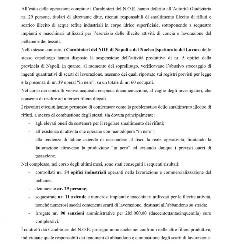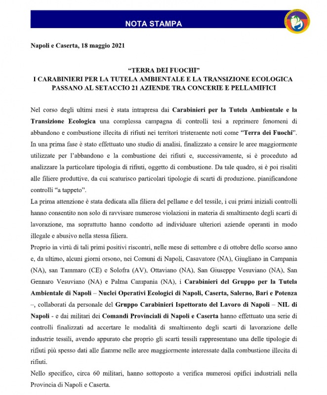 Na/Giugliano/San Tammaro/S.Giuseppe V./S.Gennaro V. Controllo abbandono e combustione rifiuti. "Controllati 54 opifici industriali, sanzioni amministrative per 285mila euro"