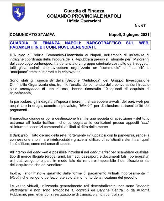 Questa parte della nota stampa della Guardia di Finanza di Napoli: