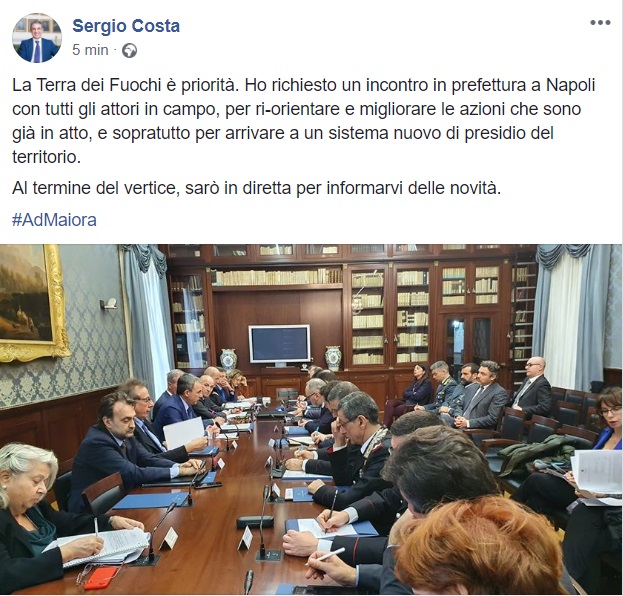 Questo quanto pubblicato sulla pagina facebook del Ministro Costa: