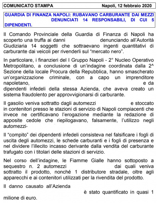 Pubblichiamo nota stampa del Comando Provinciale Guardia di Finanza Napoli