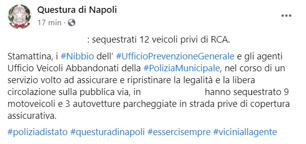 Questo parte di quanto pubblicato sulla pagina facebook della Questura di Napoli: