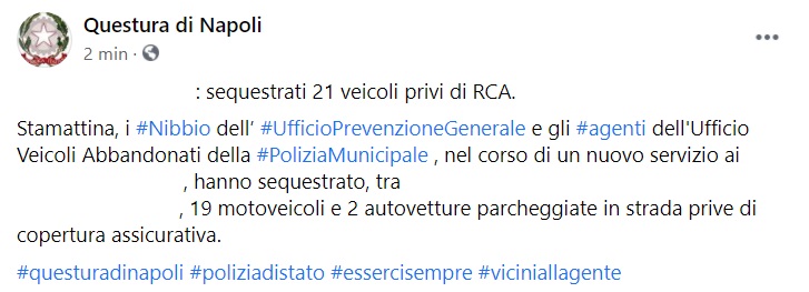 Questo parte di quanto pubblicato sulla pagina facebook della Questura di Napoli:
