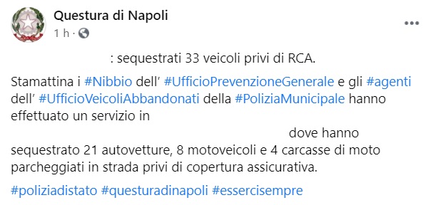 Questo parte di quanto pubblicato sulla pagina facebook della Questura di Napoli: