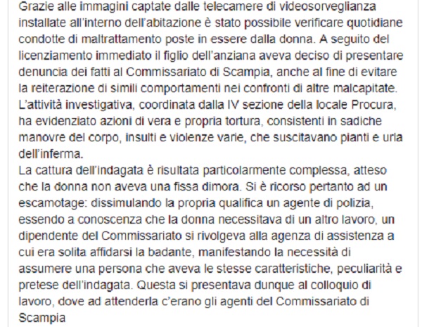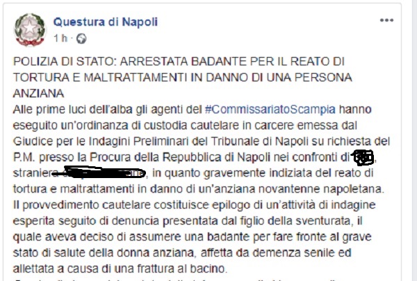 Questo il post pubblicato sulla pagina fb ufficiale della Questura di Napoli.