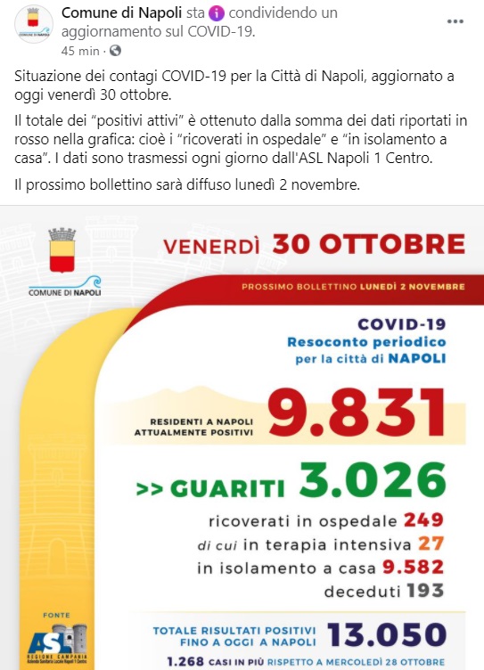 Questo quanto pubblicato sulla pagina facebook del Comune di Napoli: