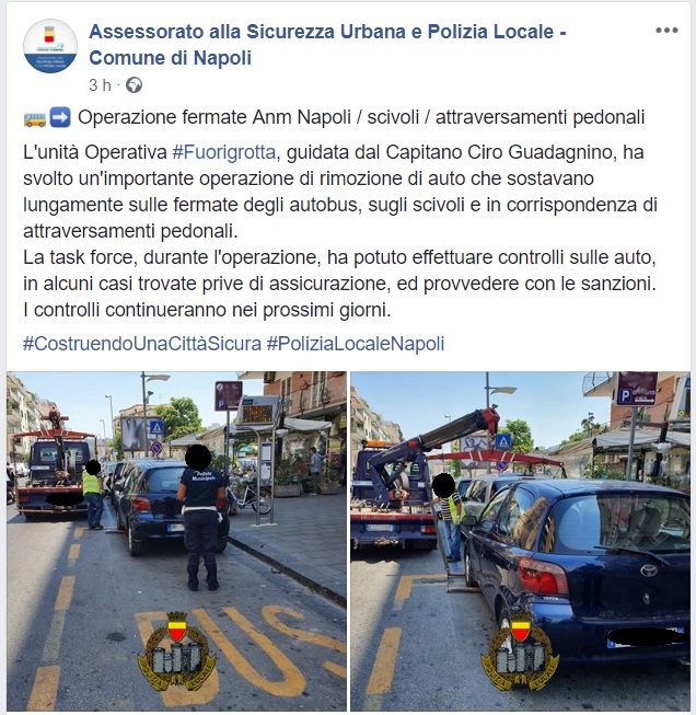 Questo quanto apprendiamo dalla pagina FB della Polizia locale di Napoli