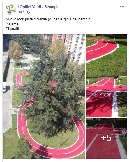 Dalla pagina Facebook dell'associazione Pollici Verdi Scampia abbiamo appreso della installazione di questa fantastica pista ciclabile per i bambini del quartiere.