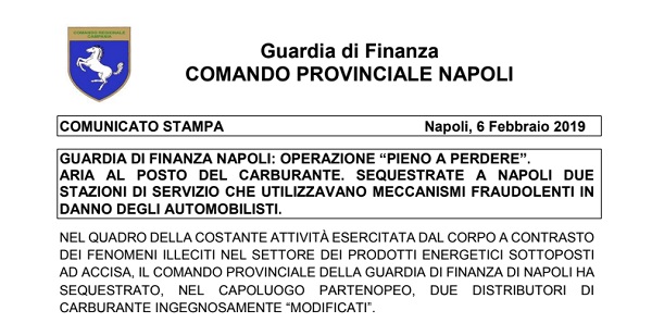 Questo il comunicato inviatoci dal Comando Provinciale della Guardia di Finanza di Napoli.