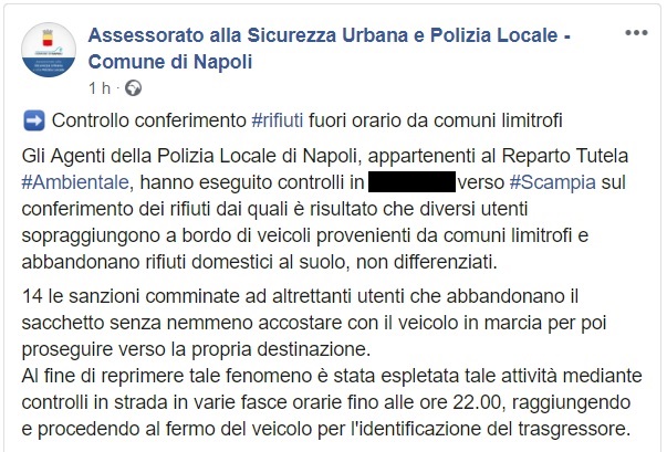 Questo quanto apprendiamo dalla pagina FB della Polizia Municipale di Napoli