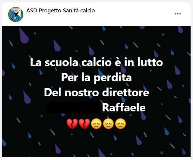Questo quanto pubblicato sulla pagina facebook della società ASD Progetto Sanità Calcio