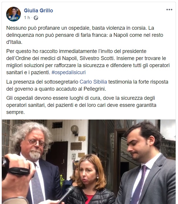 Dopo l'increscioso episodio della sparatoria all'ospedale Pellegrini, il Ministro della Salute Giulia Grillo ha incontrato rappresentanti dell'Ordine dei Medici ad Avellino.