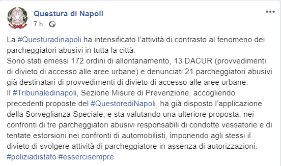 Questo il post pubblicato sulla pagina Facebook della Questura di Napoli: