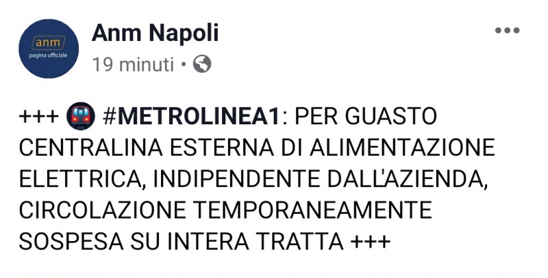 Lo apprendiamo dalla pagina Facebook ANM NAPOLI: