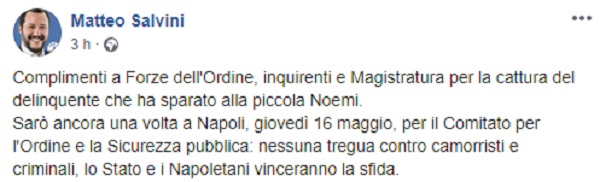 Noemi sta meglio, le notizie sono incoraggianti; la bambina sarebbe sveglia e cosciente.