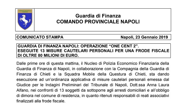 Questo il comunicato inviatoci dal Comando Provinciale della Guardia di Finanza di Napoli.