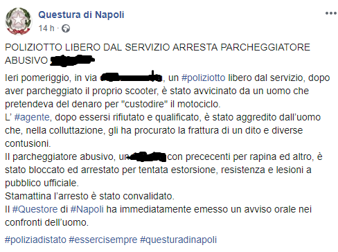 Questo il post pubblicato sulla pagina Facebook della Questura di Napoli: