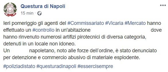 Questo quanto pubblicato sulla pagina Facebook della Questura di Napoli: