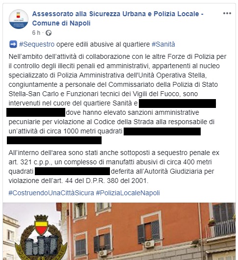 La Polizia locale di Napoli ha comunicato quanto segue