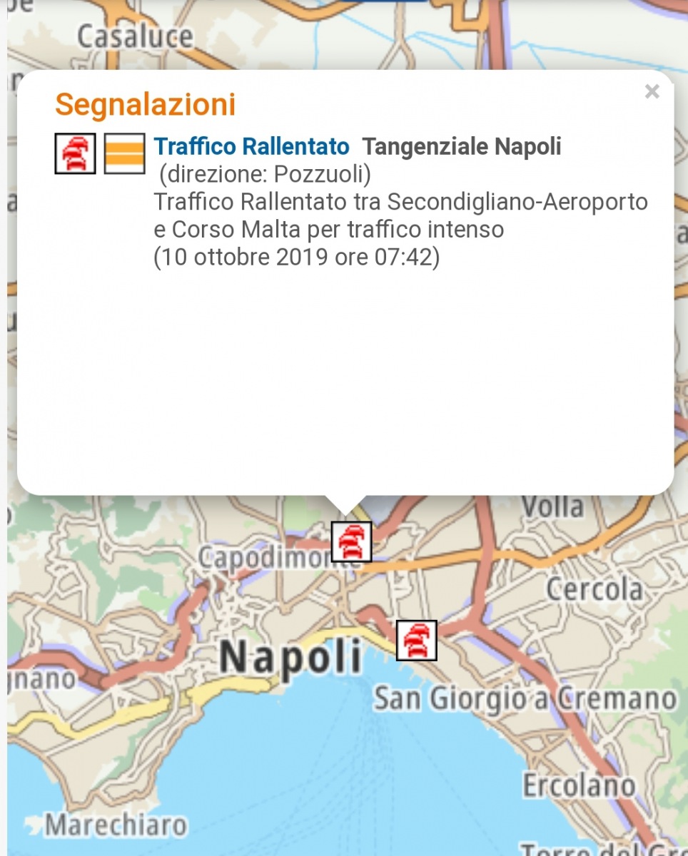 Traffico Rallentato tra Secondigliano-Aeroporto e Corso Malta per traffico intenso (10 ottobre 2019 ore 07:42)."