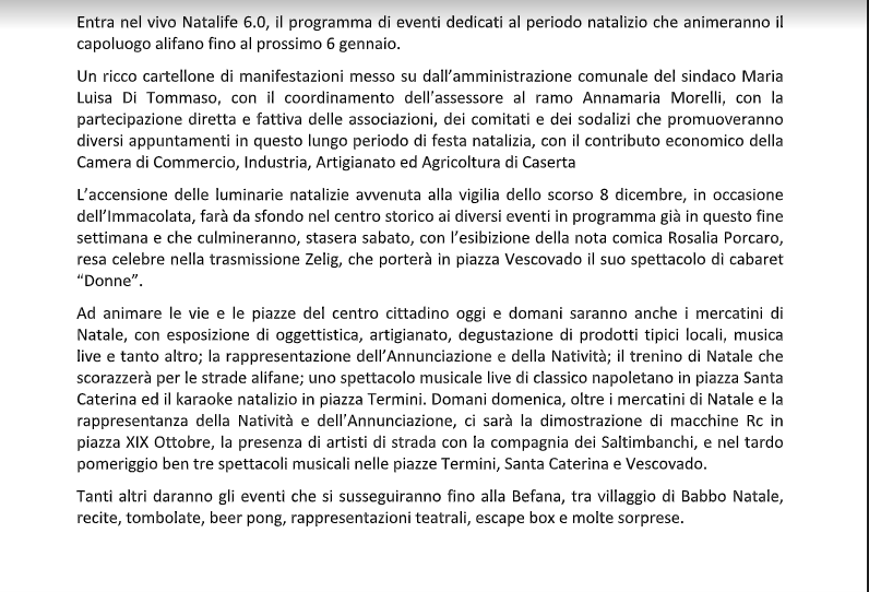 Di seguito, il testo del comunicato di Rinascita Alifana, giunto in redazione.