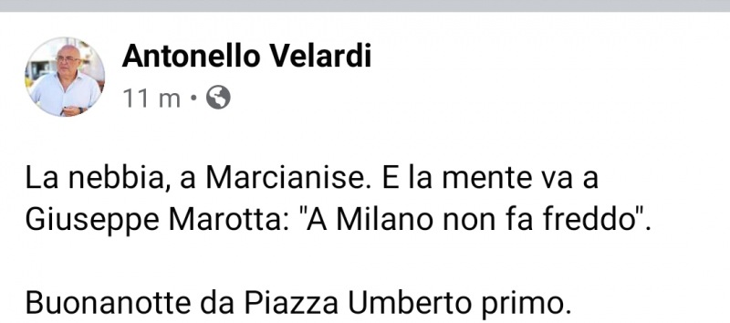 (Ruota il telefono per leggere il post Facebook del Sindaco di Marcianise, Antonello Velardi).