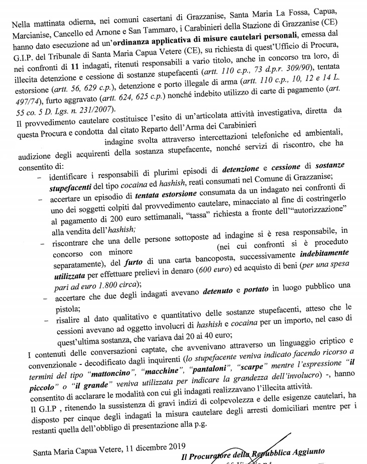 Pubblichiamo nota stampa della Procura di SMCV