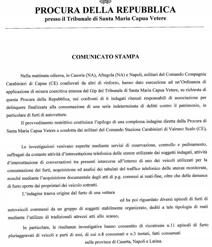 Pubblichiamo parte della nota stampa della Procura della Repubblica di SMCV