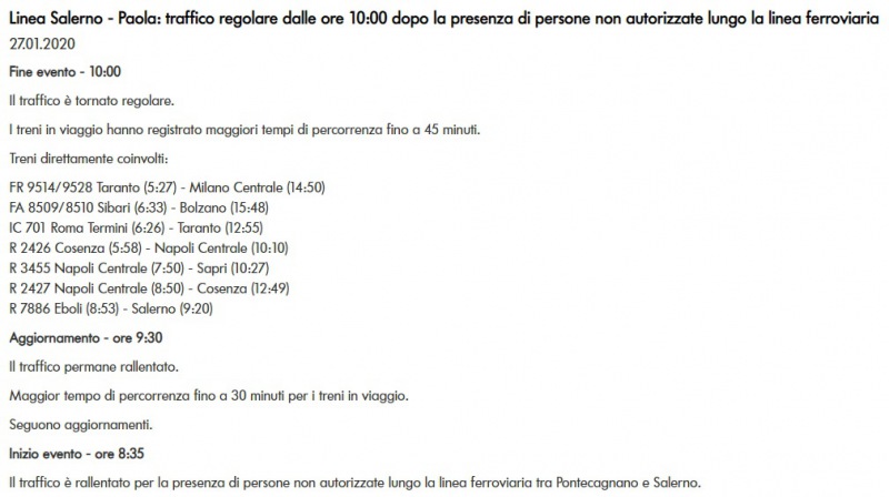 Questo quanto apprendiamo da Trenitalia