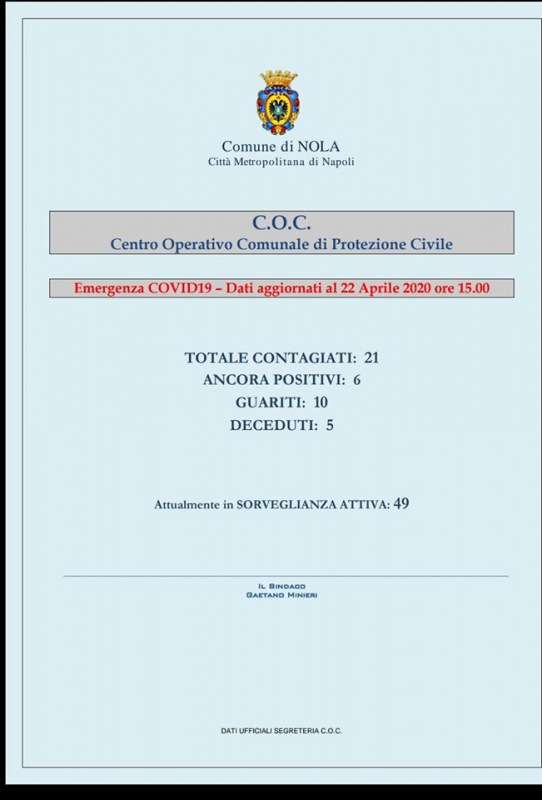 Questo quanto apprendiamo dalla pagina facebook del Sindaco Minieri: