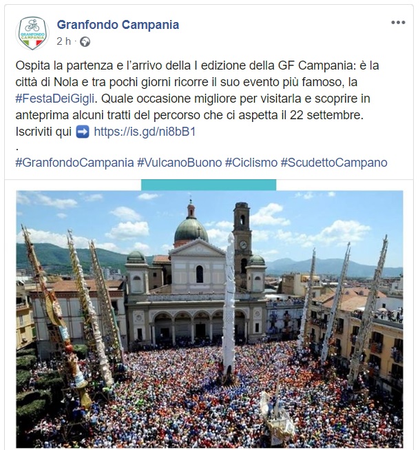 La città di Nola sarà sia partenza che arrivo della prima edizione della Granfondo Campania
