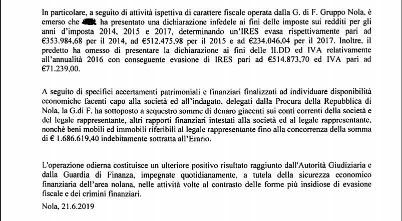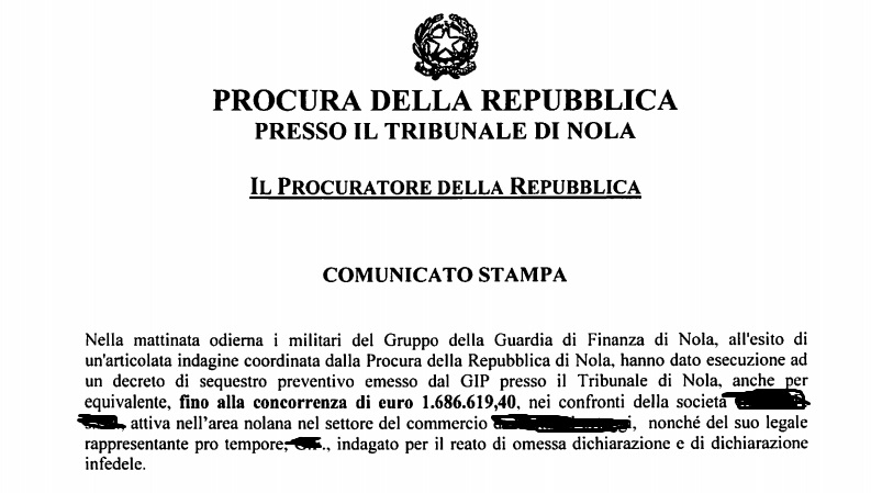 Questo il comunicato inviatoci dalla Procura della Repubblica presso il Tribunale di Nola.
