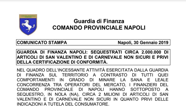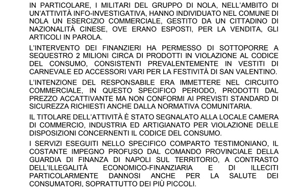 Questo il comunicato inviatoci dal Comando Provinciale della Guardia di Finanza di Napoli.