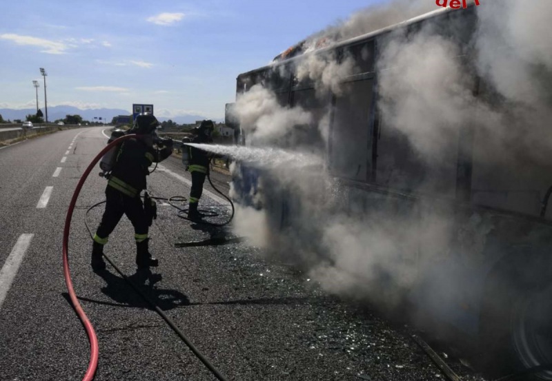 Questa la nota stampa diffusa dai Vigili del Fuoco di Caserta: "Questa mattina verso le ore 09:30 una squadra dei Vigili del Fuoco del Comando provinciale di Caserta proveniente dal distaccamento di Aversa, assistita anche da un’autobotte proveniente sempre dallo stesso distaccamento, è intervenuta sulla Nola-Villa Literno in direzione Nola, al km 11.700 - si legge nel comunicato - per un incendio che ha interessato un Autobus in servizio extraurbano. Al loro arrivo sul posto i Vigili del Fuoco hanno trovato l’autobus, che aveva finito il suo servizio ed era diretto verso il deposito, completamente avvolto dalle fiamme generando una colonna di fumo denso che ha creato non pochi disagi alla circolazione. Il veicolo - si legge ancora - è stato subito spento dai Vigili del fuoco e messo in sicurezza. Nessuna persona è rimasta coinvolta".