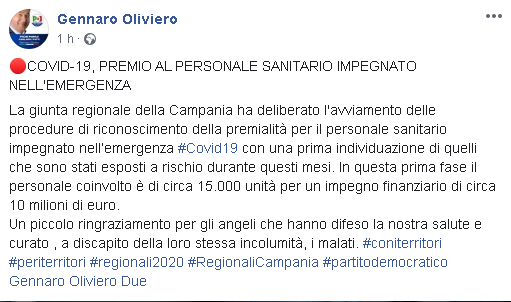 Questo, quanto pubblicato sulla pagina facebook dell'On. Oliviero: