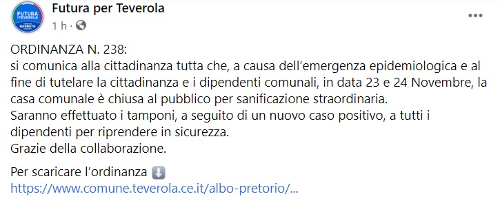 Questo quanto apprendiamo dalla pagina facebook Futura per Teverola: