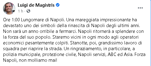 Lo apprendiamo dalla pagina Facebook del Sindaco di Napoli, Luigi De Magistris.